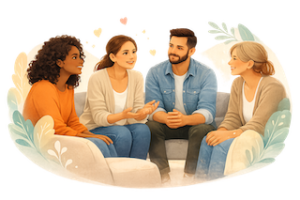 Le groupe d’entraide est un espace de partage, d’écoute, de questionnement et d’échanges sur ce que chacun vit. Il permet aux personnes présentes d’entrer dans le processus de deuil, d’aider, ou d’être aidées par d’autres personnes en deuil.